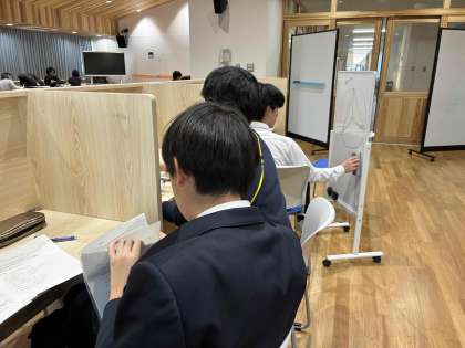 毎日10人ほどが参加している“Stand up”の様子です。仲間と明るく教え合ったり、先生と競ってみたり、コツコツ問題を解いたり、いろいろな学び方で進んでいます。入試に向けて頑張っていきましょう。