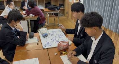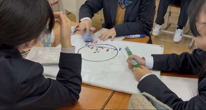 授業の様子【9年数学】 公開日 2025/12/16 更新日 2025/12/16 学校の様子 グループでの学びを経て、三平方の定理に慣れてきています。本日は円と直線にまつわる内容でした。家でも復習してきてもらえたらと思います。