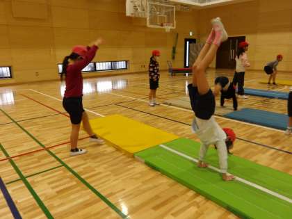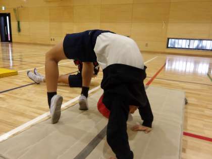 マット運動の学習に取り組んでいます。