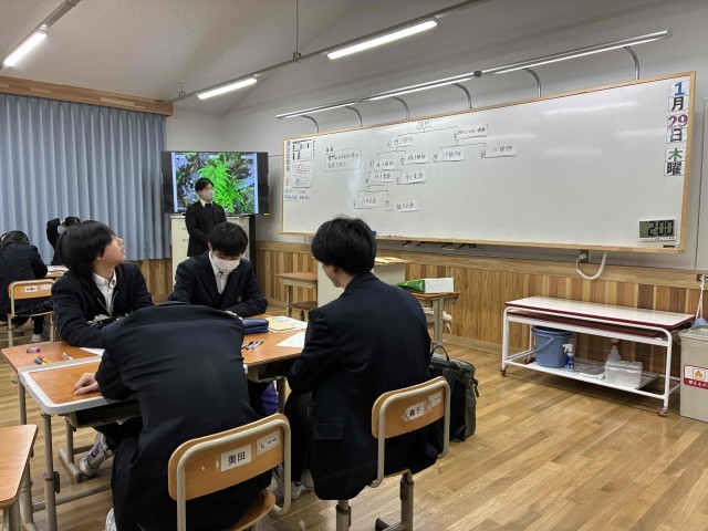 授業の様子【9年生 理科・英語】 公開日 2026/01/29 更新日 2026/01/29 学校の様子 理科の授業では植物の分類・英語ではALTの先生と共にリスニングの学習を行っていました。有意義な時間にしてください。