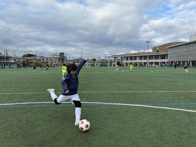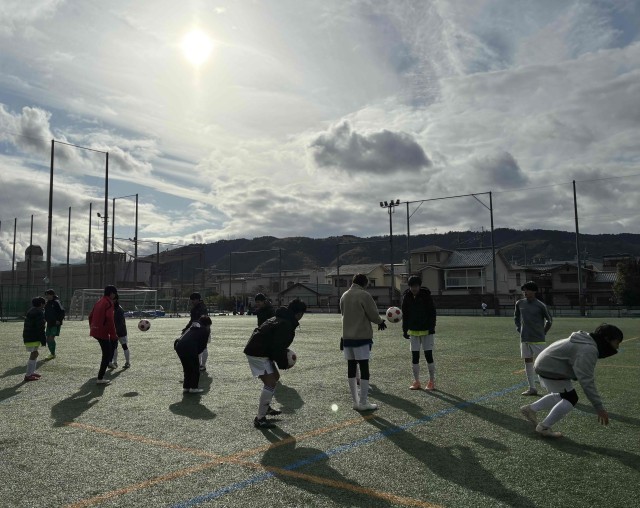 立命館中学校との練習試合を実施しました。日頃とは異なる環境でサッカーができたのでとても楽しそうでした。試合自体は2年生主体のチームで、人数もとても多く、圧倒される場面が多かったです。