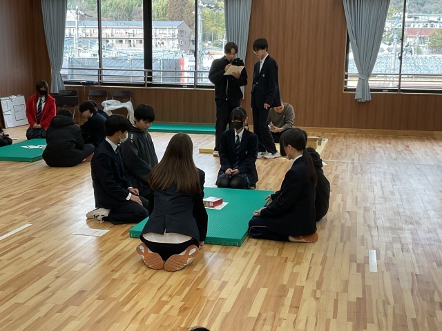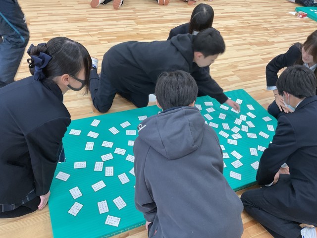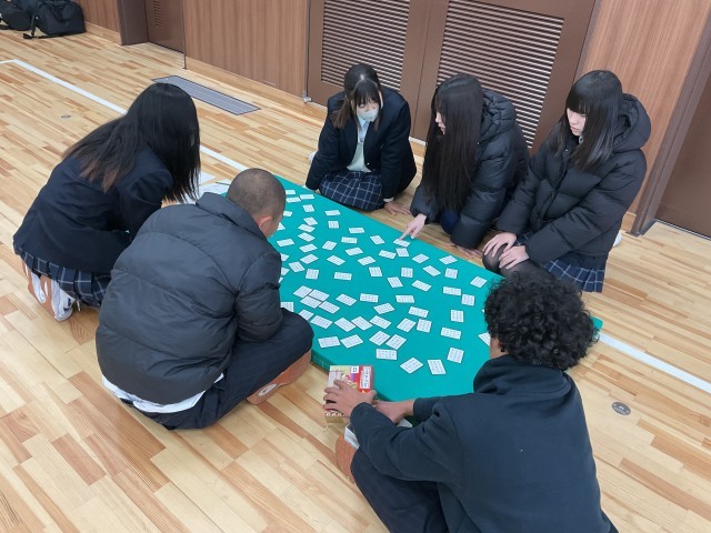 8年生国語科の取り組みとして、6限に武道場で百人一首大会を行いました。