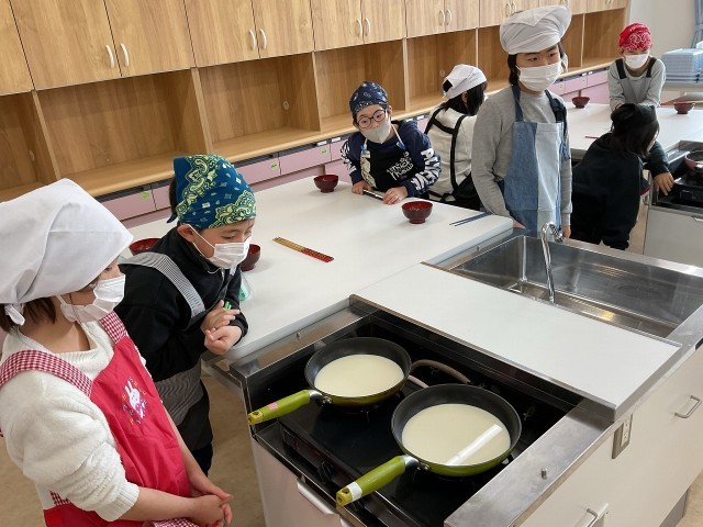「ゆば庄」より橋本様をゲストティーチャーとしてお招きし、湯葉の調理体験をさせていただきました。調理の前には、ゆば庄がどのようなことを考え、ゆばづくりをされているのかも聞かせていただきました。