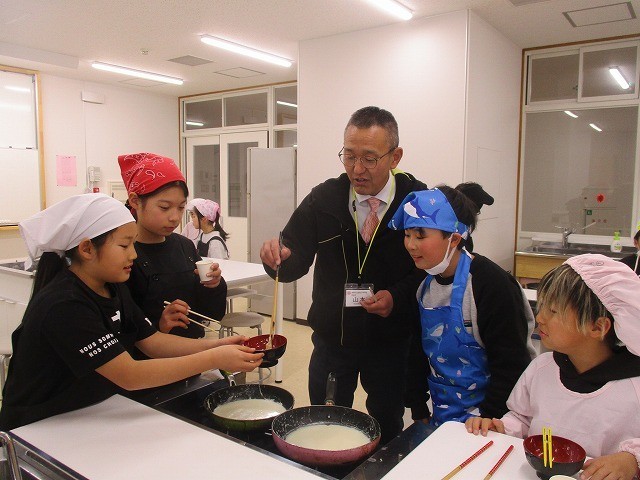 自分でつくった湯葉をおいしそうに食べる子どもたちでした。できたての湯葉はおいしかったですね。