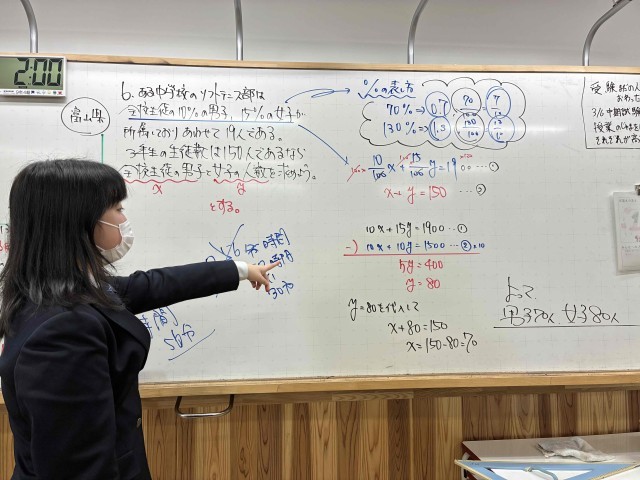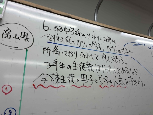 本日は連立方程式のふりかえりでした。4つの文字が出てくる問題や、割合や“は・じ・き”の問題など、色々なことをふりかえりました。