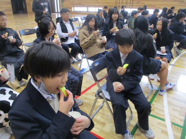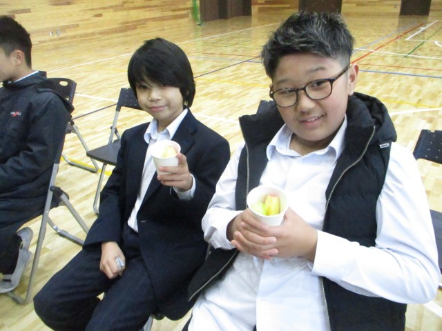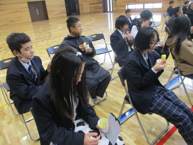 実際に「王林」と「サンふじ」の試食をさせていただきました。どちらもそれぞれ良さがあり、とても美味しくいただいていました。