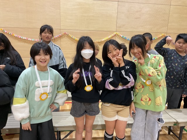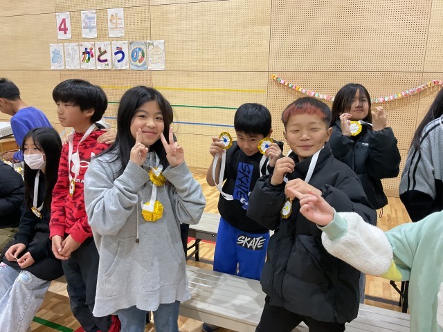 4年 「4年生ありがとうの会」 公開日 2026/03/05 更新日 2026/03/04 学校の様子 1年生からもらったメダルを嬉しそうにかける4年生。かわいすぎます!!! この日のために、たくさんの準備をしてくれた1〜3年生、本当にありがとう!!!