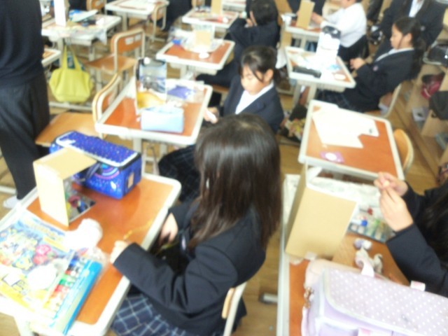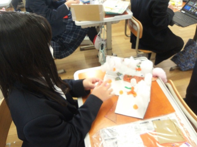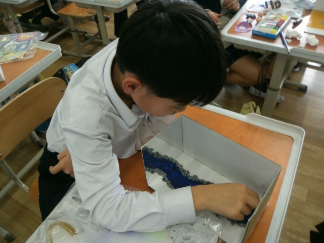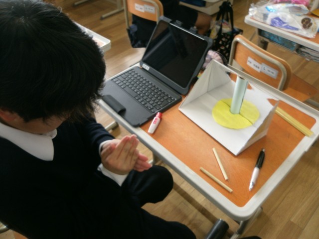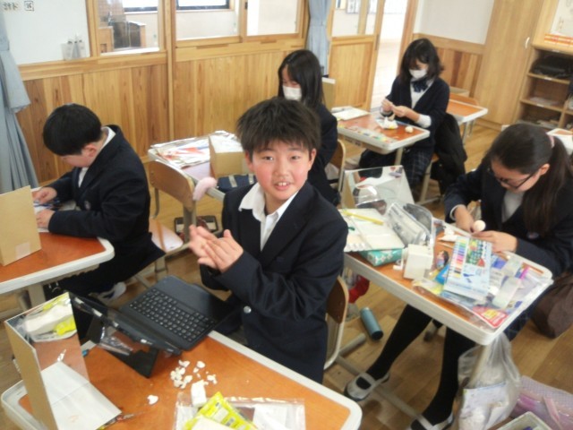 鏡の反射する良さをいかして作品を作りました。綱引きをしているところやメリーゴーランドなど鏡をいかしたおもしろい作品がたくさん出来上がりました。