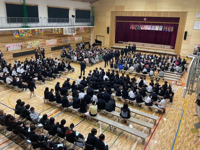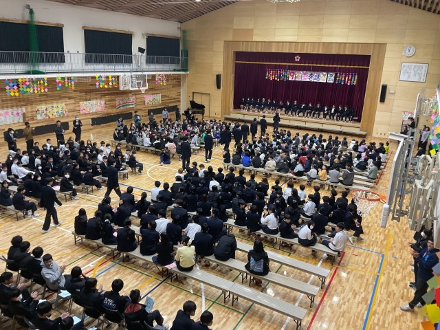 9年生の入場の様子です。1から8年生の児童生徒みんなであたたかく迎えています。