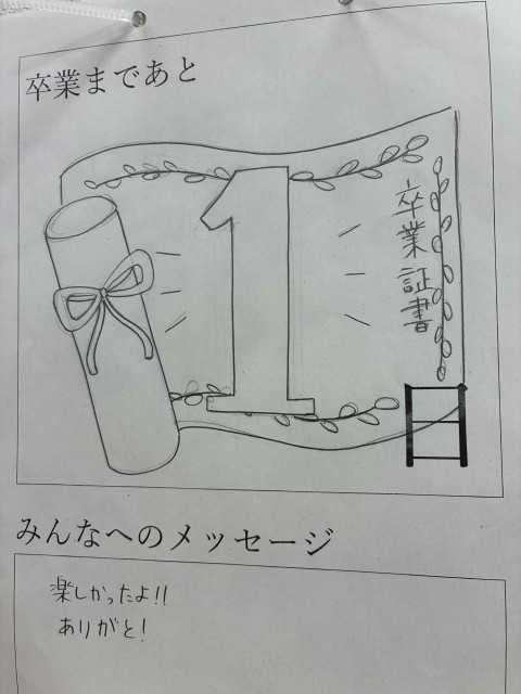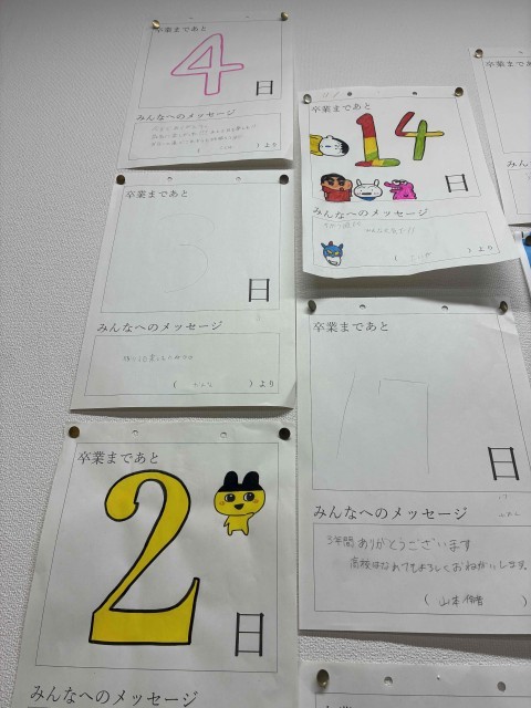 クラスのカウントダウンも終盤・・・ 公開日 2026/03/12 更新日 2026/03/12 学校の様子 各クラスで実施している“カウントダウン企画”もラストスパートですね。丁寧に書かれていて、寂しい気持ちが増しています。