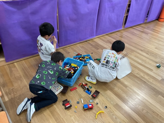 3人ともブロックが好きで仲良く遊んでいました。