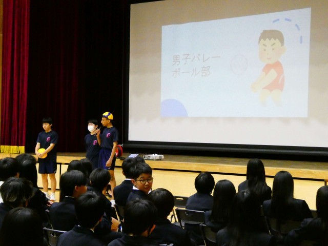 部活動紹介【2ND STAGE】 公開日 2026/04/13 更新日 2026/04/15 学校の様子 セカンドステージオリエンテーションでは、上級生から部活動についての説明がありました。各部活動の代表者が一生懸命活動について伝えてくれましたね。明日からの体験で自分に一番合う、最高の部活動を見つけてくださいね。 5年生 6年生 7年生 8年生 9年生 クラブ活動 部活動