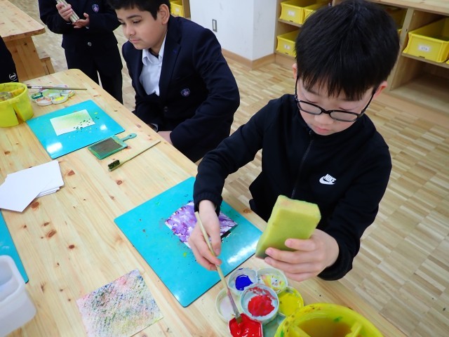 【図画工作】心のもよう 公開日 2026/04/14 更新日 2026/04/14 学校の様子 図画工作で「心のもよう」の学習をしました。いろいろな用具を使って、おもいおもいに学習に取り組むことができました。 +3 1組