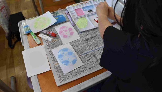 表現技法のにじみやデカルコマニーなどでも楽しんでいました。
