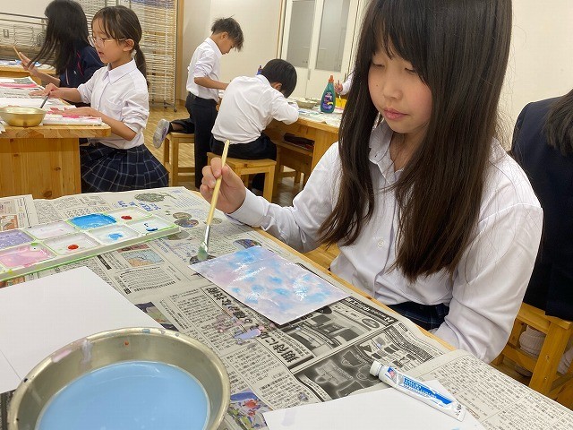 5年 図画工作科「心のもよう」 公開日 2026/04/17 更新日 2026/04/17 学校の様子 5年生になった気持ちを「色」や「形」で表しました。 子どもたちは、楽しみながら取り組んでいました。 5年生