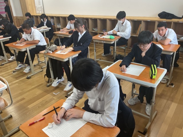 今年度より、学力向上を目指して「100文字作文」がスタートしました。