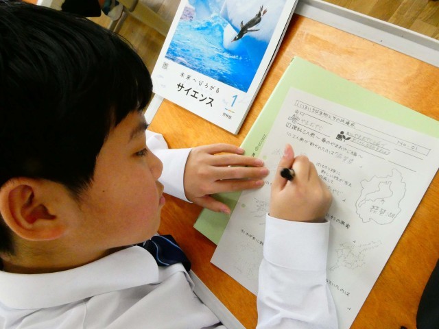 理科の授業では生物について、国語では100文字作文の取組に挑戦しています。各教科、一生懸命頑張っていますね。