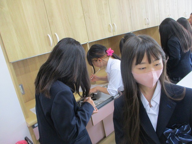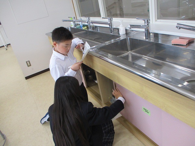 調理室には、どのようなものがあるのかを調べました。用具の用途によって、整理して置かれていることにも気づくことができました。