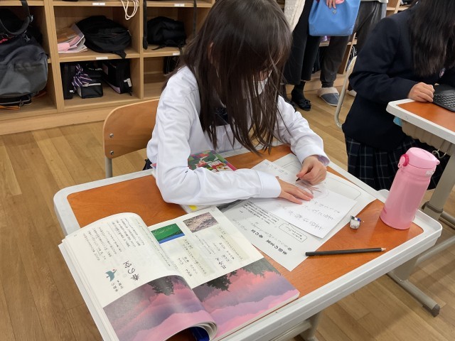 「春はあけぼの…」で始まる枕草子を紹介し、自分だけの枕草子を書きました。それぞれに春のよさを考え、文章に表すことができていました。