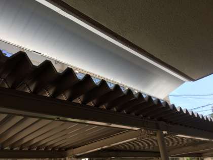 第1校舎と第2校舎は、建物の「ひさし」と渡り廊下の「屋根」との間に隙間があいていました。そのため雨が降ると隙間部分はずぶ濡れになり、濡れた床が滑りやすくて危ないと感じることがありました。そのため6月3日に改修が行われ、銀色のしっかりとした雨よけをつけていただきました。これで雨の日も濡れないのはもちろんのこと、今までのように滑りやすさを心配することもなく学校での生活が過ごせます。
