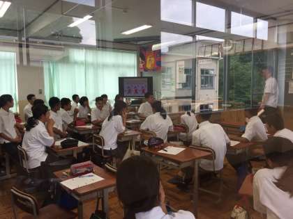 2年生の人権学習では国際理解をテーマに外国にルーツを持つ人たちの人権について考えます。