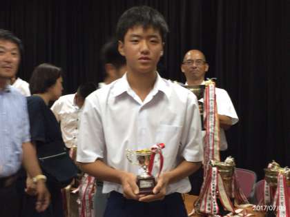 7/1〜京都市内では体育系部活動の公式戦「夏季選手権大会」の予選が行われています。今日は京都市の大会に向けての優勝杯(平成28年度分)の返還式が総合教育センターでありました。本校は昨年度男子ソフトテニス部が団体優勝をしています。今日の返還式では本校の生徒がみんなの前で「決意の言葉」を述べる大役を見事に果たしてくれました。