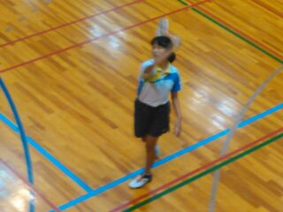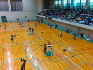 横大路体育館でバドミントン競技が行われています。個人戦(シングルスとダブルス)で健闘しています。