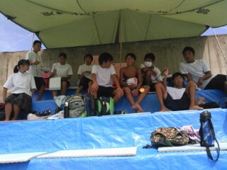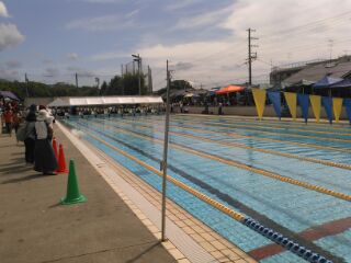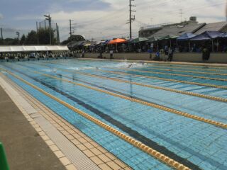 夏を思わせる太陽のもと本校50メートルプールにて水絵秋季大会が盛大に行われました。大きな声援が響き渡っています。