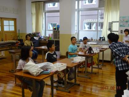 1組の教室では「鳴子」をつくり、演奏します。