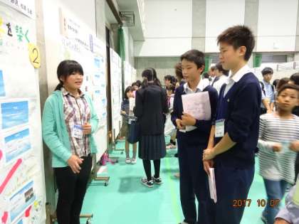 三連休の初日に堀川高校で行われたポスター発表会に3年生の5名が参加しました。この取組は小学校・中学校・高校・支援学校の生徒が集まり、自分たちの研究の成果を発表すると同時に、他校の発表を聞き、意見交換するものです。加茂川中学校からは「沖縄と京都の文化や伝統の違いから生まれる考え方の違い」「沖縄の歴史から生まれた特有の文化」というテーマで発表を行いました。