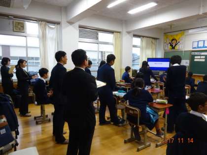 昨日は教科指導・道徳教育に関する研究報告会を本校で行いました。国・社・数・理・英の授業と道徳の授業をすべてのクラスで実施しました。