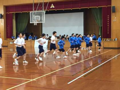 今日は少し肌寒い朝となりましたが、1時間目の体育の授業では1年生は体育館でシャトルラン、3年生はグランドで走り幅跳びや走り高跳びに取り組んでいました。