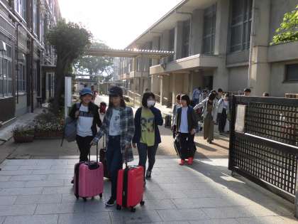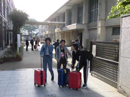 たくさんの保護者、そして先生方の見送りを受けて出発です。