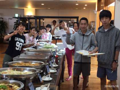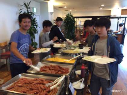 みんな元気で,ぞくぞくと朝食会場に集まってきています。