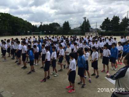 今日は各学年共に2時間ずつ体育大会に向けての練習を行います。各競技の確認はもちろん、学年種目の入退場の確認なども行います。今日は日陰は涼しくてさわやかですが、日差しは結構あります。水分補給など、暑さ対策にも十分配慮して各学年とも取り組みます。