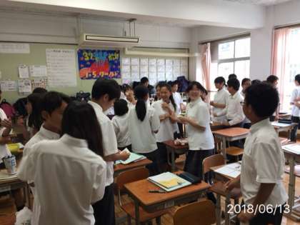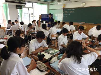 公開授業も今日が2日目です。授業ではグループワークや、英会話のためのペアーワークも取り入れながら子どもたちは学習に取り組んでいます。