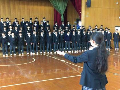 今日から「3年生を送る会」の体育館を使っての練習がはじまりました。1年生は全員が前に整列し、学年合唱の練習です。放課後は部活動ごとにビデオ撮影も行います。