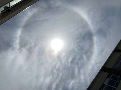 太陽の周りにボンヤリと見える