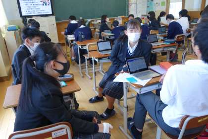 班ごとに提案のパワーポイントをTeamsの共同作業の機能を利用し作成し、発表するようです。