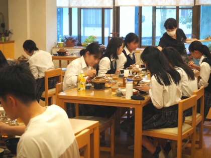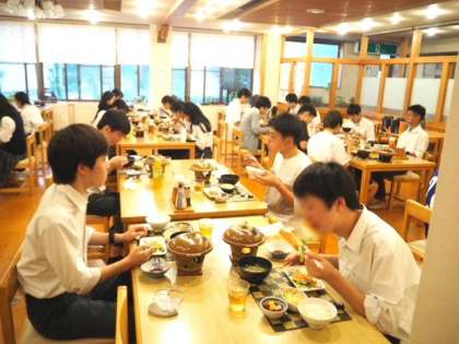 修学旅行16 宿舎到着 夕食です。