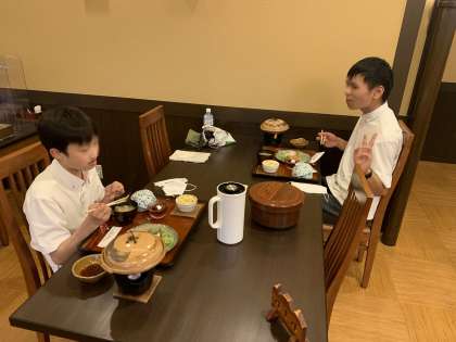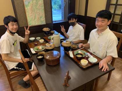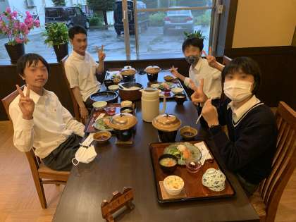 修学旅行18 宿舎到着 夕食です。