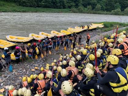ボートごとの協力が必要なこのアクティビティ、まずはしっかり説明を聞いて、川の流れを楽しみましょう!