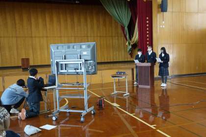 司会進行をする執行部のみ、体育館に集まり全体の運営をし、各学年の歌ややダンス、メッセージなどの出し物は事前に録画しておき、それを各教室で見てもらうこととしました。
