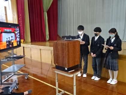 生徒会執行部の皆さんから制服ファッションショーとして、季節に合わせた服装の紹介をしたり、加茂川クイズショーで学校の様子を楽しく紹介もしてくれました。2・3年生からはダンスメッセージ・ビデオの作成し、その視聴して、1年生にとっては直接見ることができませんでしたが、画面を通して加茂川中学校の様子を知ってもらったかと思います。