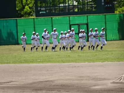 5月8日(日)午後 岡崎球場にて、西院中学校との対戦でした。西院中学校は、準決勝でサヨナラ勝ちをして、調子が乗った状態で引き続き行われる決勝に臨んでいます。本校の選手は、午前の試合から時間が経ってからの決勝戦です。
