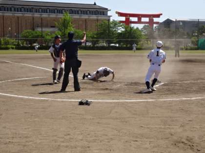 3回に1点を取られるも、外野から本塁に返球してアウトを取り、追加点を阻止!加茂川中も4回の攻撃で1点を入れ追いつき、満塁のチャンスだったが、追加点ならず! 緊張する試合展開が続きます。