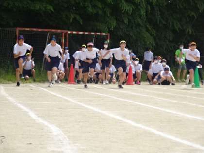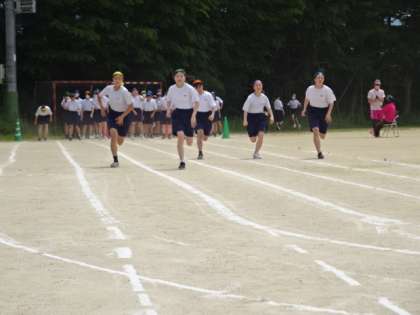 3年生の徒競走です。3年生になると体幹が決まった安定した走りをしている生徒が多く見られました。コロナ渦で体力の低下が言われています。日頃からランニングなど体の成長時期にしっかり体作りをして、人生100年時代とも言われていますので、これからもその基盤になる体作りをしていきましょう。