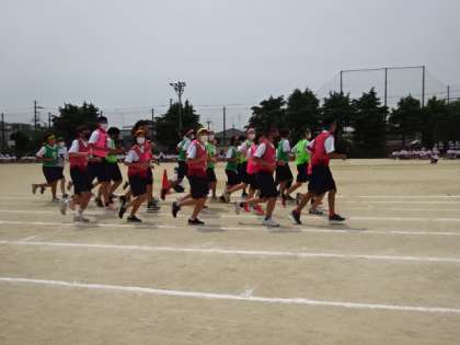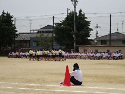 男女混合縦割りリレーです。練習する時間もなかなか取れず、お昼休み等を利用して、バトンパスなどの練習をしてきました。スタート前には、一部のクラスから応援のために手拍子が始まったのですが、スタート直前には全校生徒が同じリズムの手拍子が続きグラウンドいっぱいに音が浸透し、一体感を感じて感動しました。