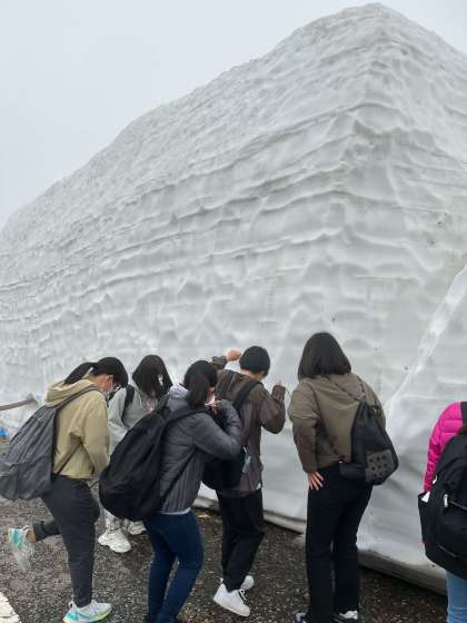 雪の大谷、室堂の展望台です。気温6度です!