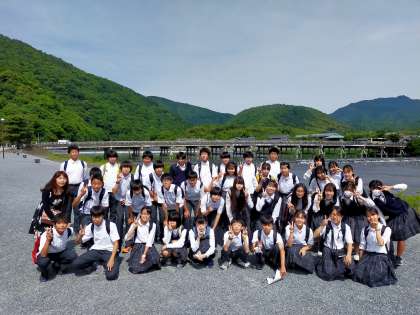 現地に到着してクラス写真を撮影後、化野念仏寺や大沢池などを巡ります。